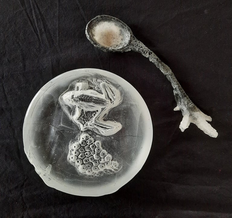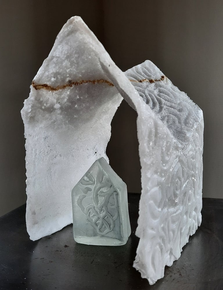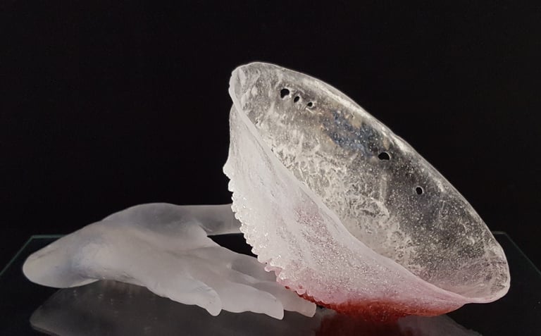 Met glasscasting kan ik de contrasten tussen gladde en ruwe oppervlakken verkennen en de kracht en breekbaarheid van glas laten zien. De interactie van licht met de vormen versterkt het gevoel van transformatie en geeft elk object een levendige uitstraling.
