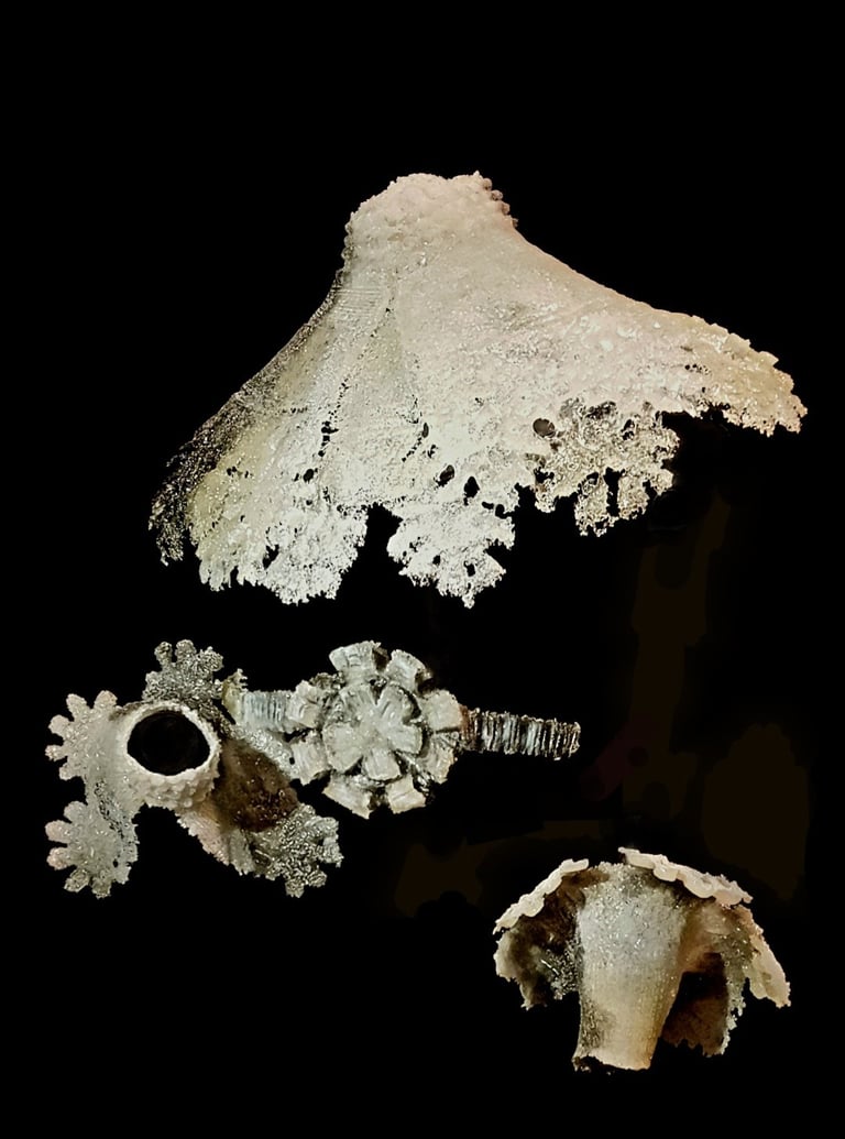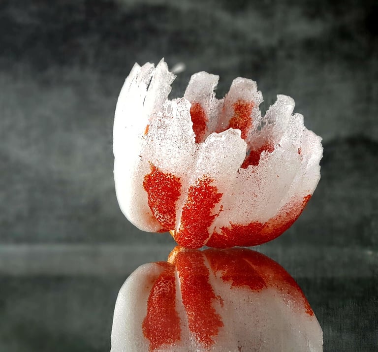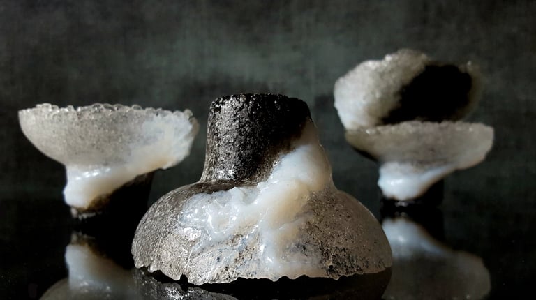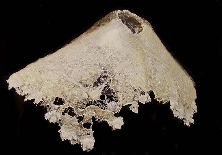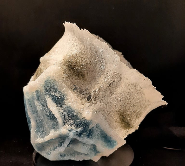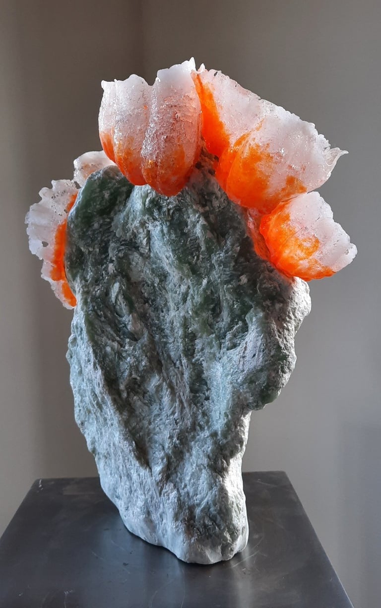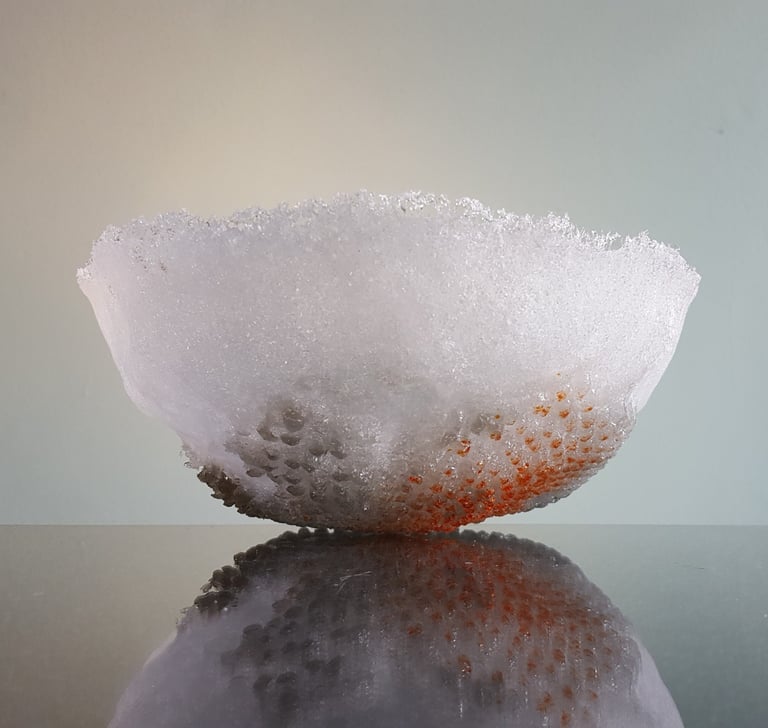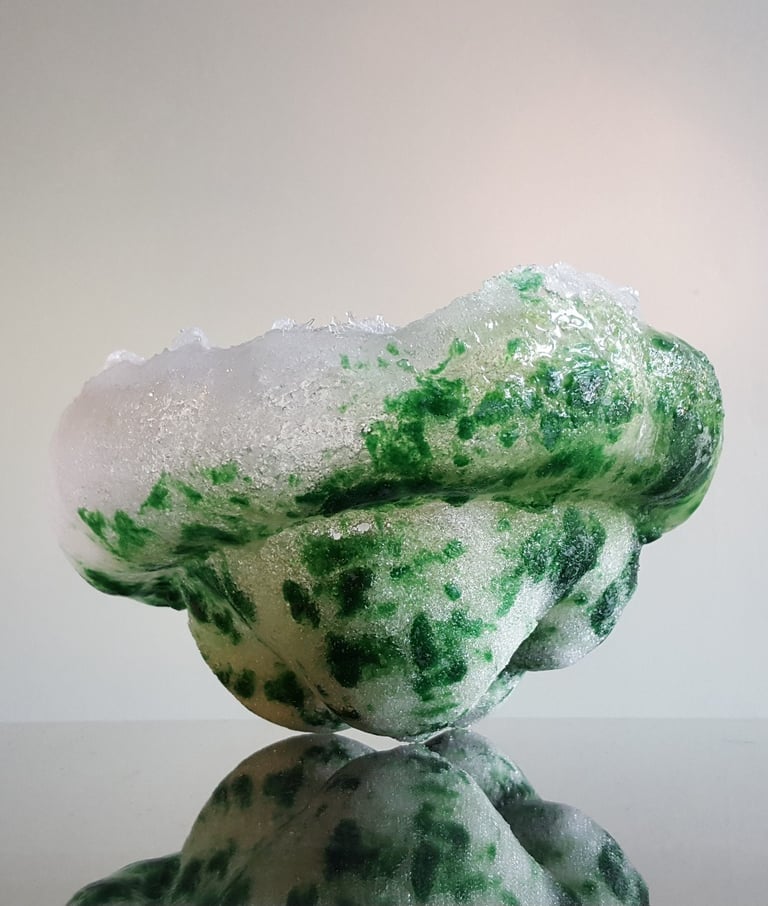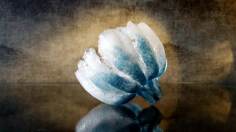 Met mijn eigenzinnige toepassing van pâte de verre geef ik glas de uitstraling van sneeuw of smeltend ijs, en verbeeld ik de kwetsbaarheid en veerkracht van zowel de natuur als het leven zelf.